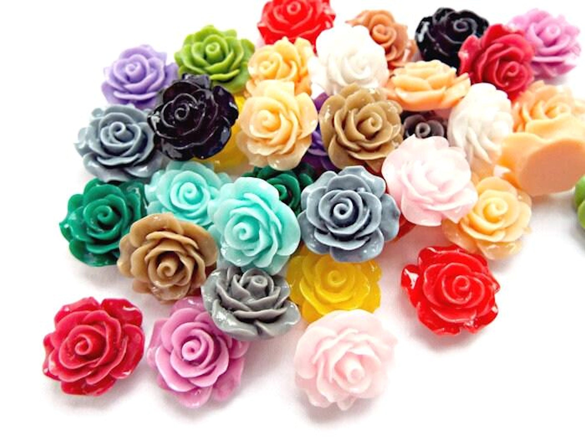 Pack of 30 Flatback Mixed Colour Rose Cabochons in 18 Colours